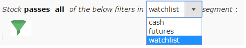 Click on the segment filter at the top of the screener page, and select “Watchlist” from the dropdown menu. The scan will then be run for the stocks in your Watchlist. You can create your new watchlist here